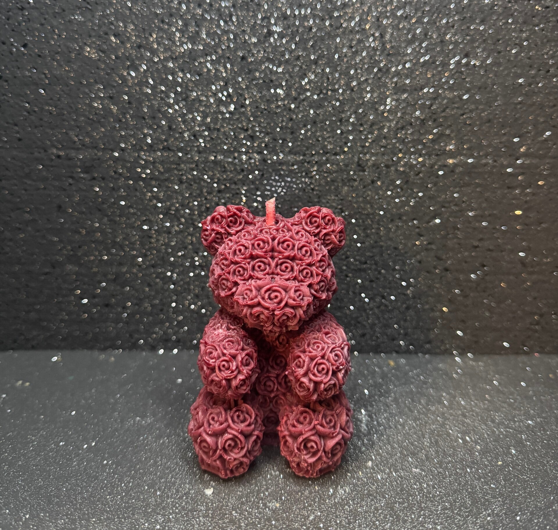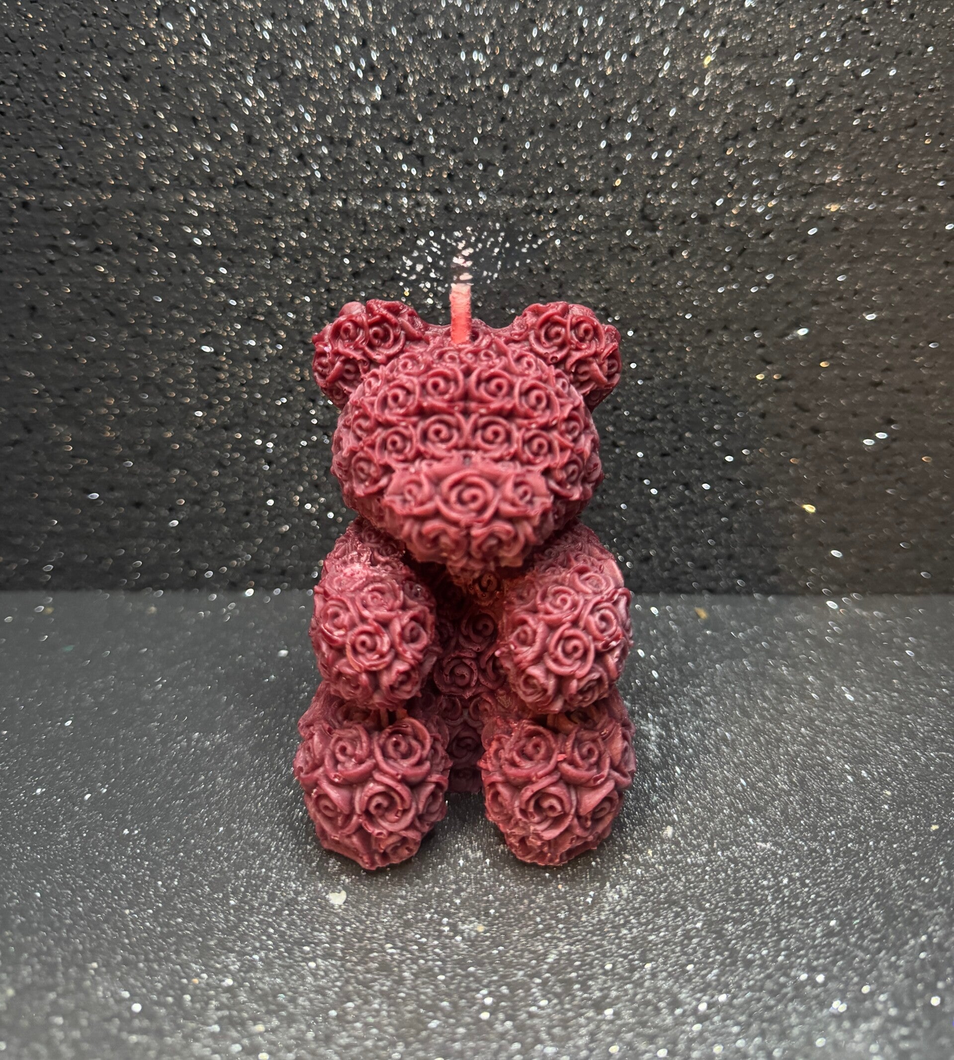 Niedliche, kleine Rosenbärchenkerze. Das ideale Geschenk für einen geliebten Menschen. Zum Valentinstag, Jahrestag oder einfach nur als Zeichen der Wertschätzung.
