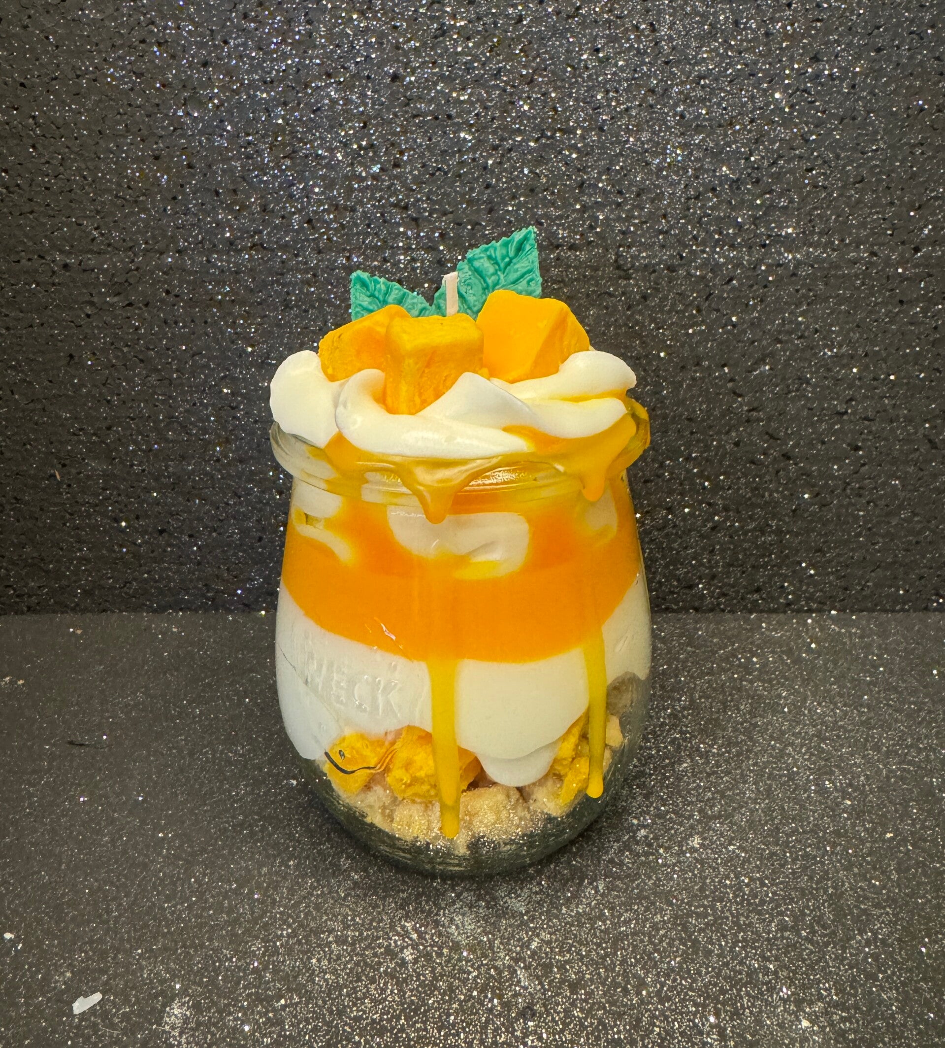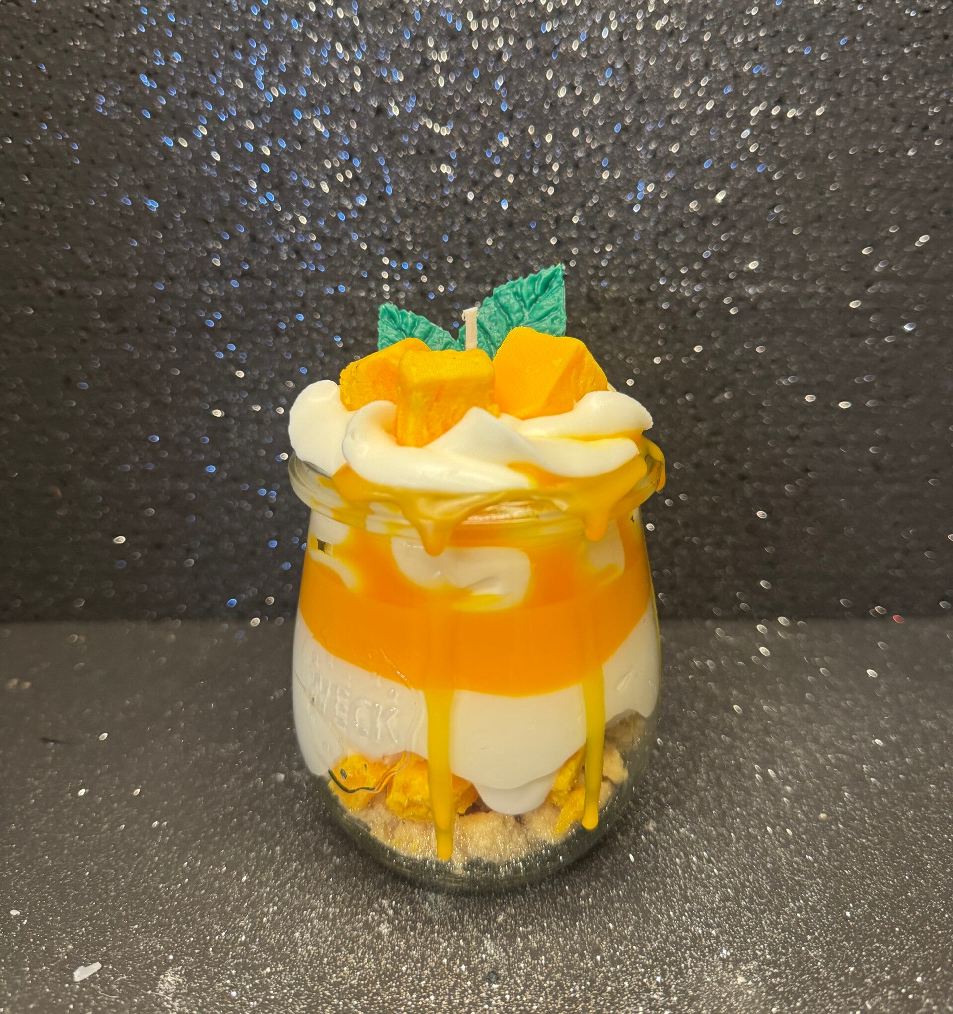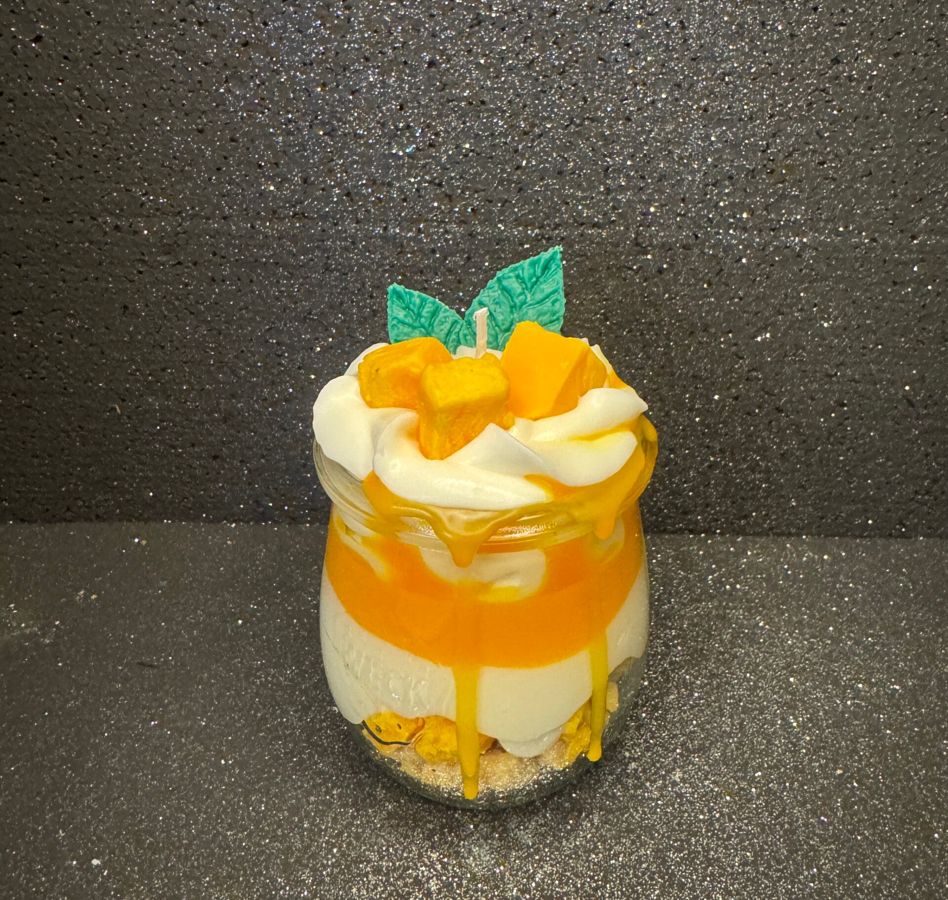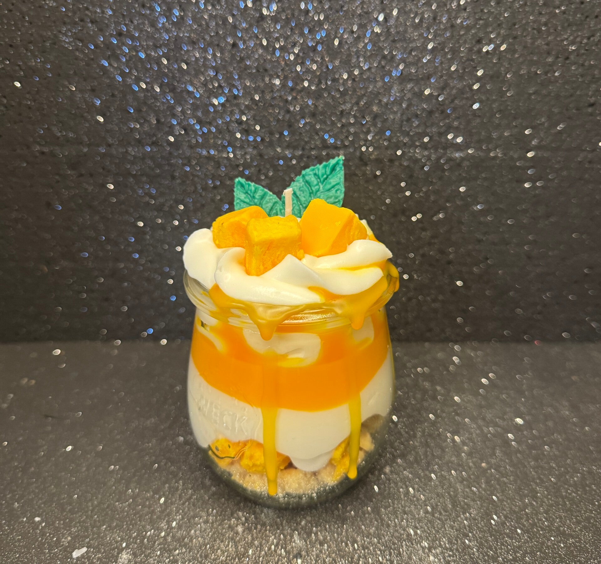 Ein leckeres Mango Dessert oder? Und es hat auch überhaupt keine Kalorien. Nein, nein, bitte auf keinen Fall essen, denn dieses absolut lecker aussehende Dessert ist eine Kerze. Ein absoluter Hingucker! Mit leckerem Mango Mandarinen Duft oder auch wie immer ganz ohne Duft bestellbar ♥️