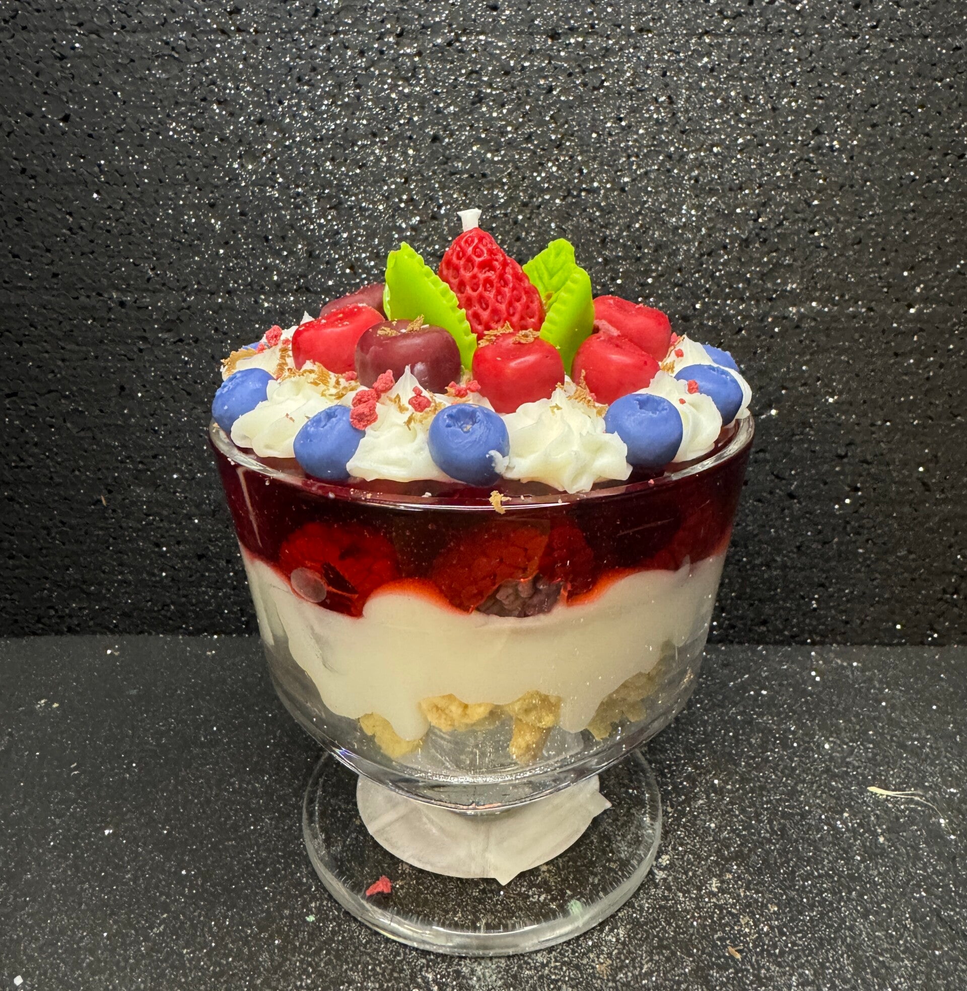 Waldfrucht Dessertkerze. Diese fruchtige Dessertkerze sieht nicht nur unendlich lecker aus, sondern duftet (auf Wunsch) auch fantastisch. Diese Kerze ist einmalig und ein absoluter Hingucker.